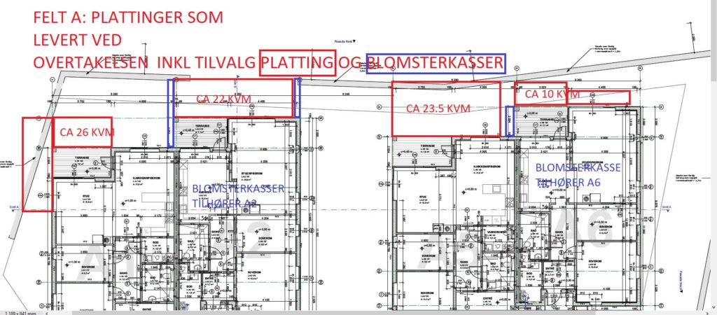 Tegninger som viser avgrensing av den eksklusikv bruksrett til en hageparsell