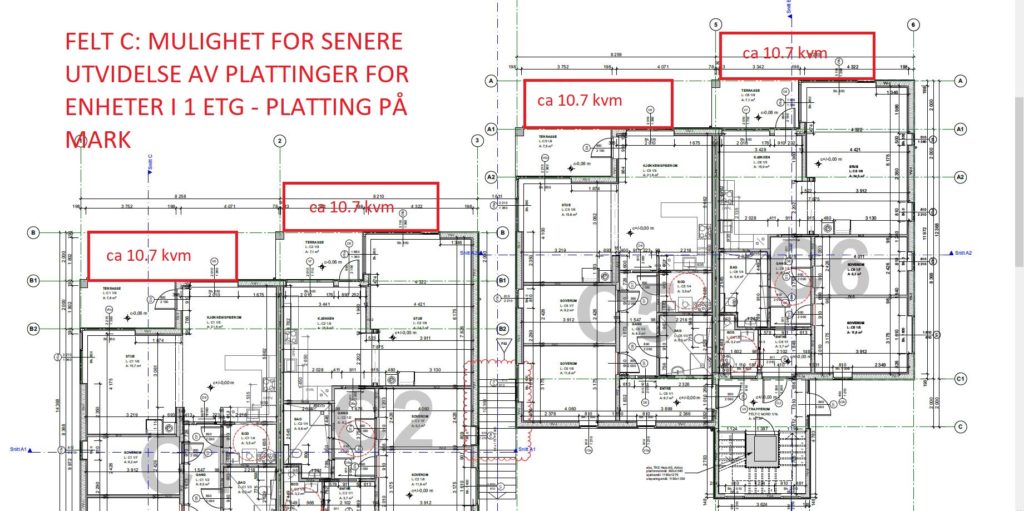 (1) Hver andel gir enerett til å bruke en bolig i borettslaget og rett til å nytte fellesarealer til det de er beregnet eller vanlig brukt til, og til annet som er i samsvar med tiden og forholdene. Boliger på bakkeplan har en eksklusiv bruksrett til en hageparsell. Omfanget av denne bruksretten fremgår av de opprinnelige tegningene (utomhusplan), og styret skal godkjenne enhver bruksendring og installasjon på dette arealet. Vedlegg til disse vedtektene er utomhusplan opprettet 8.12.2017/foreløpig 1.2.2018 for Felt B, og tegninger for felt A og C.